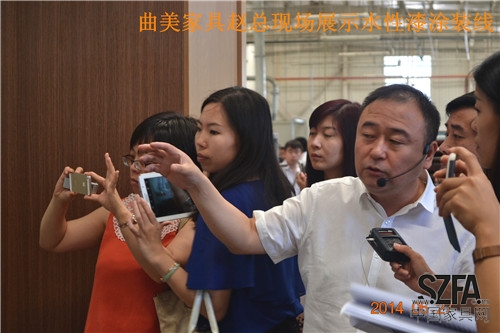 曲美家具趙總現(xiàn)場展示水性漆涂裝線