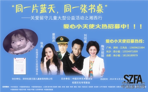 近年來(lái),留守兒童所引發(fā)的一些社會(huì)問題,使這個(gè)弱勢(shì)群體備受社會(huì)關(guān)注,作為最具文化特色品牌,松堡王國(guó)兒童家具長(zhǎng)期關(guān)注孩子的健康成長(zhǎng),時(shí)刻秉持“愛孩子、愛地球、愛未來(lái)”的核心文化理念,致力為孩子打造一個(gè)健康智慧成長(zhǎng)平臺(tái),擔(dān)當(dāng)社會(huì)責(zé)任義不容辭,不惜重金打造“同一片藍(lán)天 同一張書桌”關(guān)愛留守兒童湘西行大型公益活動(dòng),在全國(guó)范圍內(nèi)掀起一場(chǎng)“護(hù)蕊”行動(dòng);與此同時(shí),松堡王國(guó)重磅推出愛心大咖秀鉅惠總動(dòng)員系列優(yōu)惠活動(dòng),親情回饋廣大消費(fèi)者,優(yōu)惠力度空前絕后,史無(wú)前例; 此次活動(dòng)從6月7日至8月9日在深圳、廣州、長(zhǎng)沙、合肥等地同時(shí)開展,您將有機(jī)會(huì)和您的孩子與劉愷威、鞠萍姐姐等明星一起參加一次終身難忘的愛心心靈免費(fèi)體驗(yàn)之旅,和一場(chǎng)難以用金錢衡量的愛心教育之旅,名額有限;同時(shí),您的孩子有才藝的話同樣有機(jī)會(huì)哦!關(guān)愛留守兒童,讓您的孩子得到一次靈魂的升華,讓我們一起行動(dòng)起來(lái)吧!