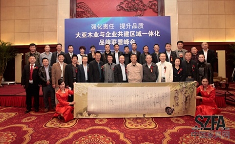 據(jù)悉,國(guó)家質(zhì)檢總局產(chǎn)品質(zhì)量監(jiān)督司司長(zhǎng)梅建華、中國(guó)林業(yè)產(chǎn)業(yè)聯(lián)合會(huì)副會(huì)長(zhǎng)兼秘書(shū)長(zhǎng)、中國(guó)林產(chǎn)工業(yè)協(xié)會(huì)會(huì)長(zhǎng)王滿(mǎn)、中國(guó)家具協(xié)會(huì)理事長(zhǎng)朱長(zhǎng)嶺、中國(guó)經(jīng)濟(jì)報(bào)刊協(xié)會(huì)會(huì)長(zhǎng)莫新元、中國(guó)林產(chǎn)工業(yè)協(xié)會(huì)顧問(wèn)張森林、國(guó)家質(zhì)檢總局產(chǎn)品質(zhì)量監(jiān)督司監(jiān)督抽查處副處長(zhǎng)王娜,綜合處副處長(zhǎng)劉金鑫、遼寧省家具協(xié)會(huì)會(huì)長(zhǎng)祖樹(shù)武、天津家具行業(yè)協(xié)(商)會(huì)常務(wù)副會(huì)長(zhǎng)兼秘書(shū)長(zhǎng)高秀芝、北京家具行業(yè)協(xié)會(huì)常務(wù)副會(huì)長(zhǎng)何法澗、中國(guó)室內(nèi)裝飾協(xié)會(huì)相關(guān)領(lǐng)導(dǎo)等產(chǎn)業(yè)行業(yè)協(xié)會(huì)主要領(lǐng)導(dǎo),大亞木業(yè)與50余家家居(家具、櫥柜、木門(mén)、地板等)企業(yè)的企業(yè)家出席了本次峰會(huì)。