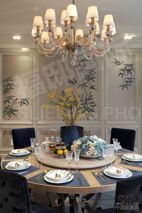 本次綠城桃花源樣板房的軟裝設(shè)計(jì)以高雅奢華的法式風(fēng)格為基調(diào),融入儒雅禪韻的東方元素。在風(fēng)格的把握上,福邸保留了之前樣板房所呈現(xiàn)的奢華感,通過(guò)對(duì)木飾面、墻紙等產(chǎn)品的選擇,減輕了空間的厚重感,取而代之的是一種優(yōu)雅而時(shí)尚的環(huán)境氣氛。