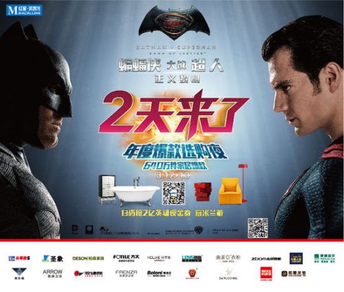 3月12日至3月13日,家居行業(yè)開年第一波最大規(guī)模促銷,紅星美凱龍“2天來了”即將在全國紅星美凱龍商場登陸。本次“2天來了”是紅星美凱龍攜手華納《蝙蝠俠大戰(zhàn)超人》打造的英雄級(jí)大促活動(dòng),640萬件家居爆款共同讓利,拉開2016年度促銷大戲。