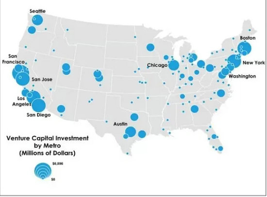 看數(shù)據(jù)。這是美國(guó)的風(fēng)險(xiǎn)投資分布圖,硅谷所占的整體比例低于30%,甚至30%都有很多水份,為什么?美國(guó)現(xiàn)在很多創(chuàng)業(yè)者不希望住硅谷,因?yàn)闆]車的時(shí)候,困難死了,他們很多人希望下樓就吃有的,周圍還有創(chuàng)業(yè)者,時(shí)不時(shí)能聚會(huì),但這在硅谷都做不到。所以大家都遷到城市,舊金山、洛杉磯、圣地亞哥、華盛頓、紐約、波士頓、芝加哥、西雅圖等等,這是第一個(gè)特點(diǎn),城市化。