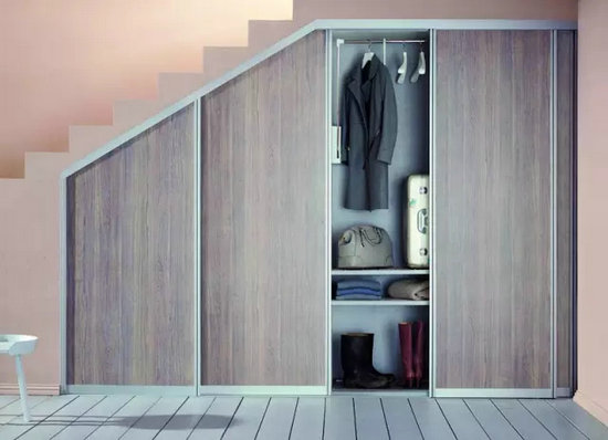 將樓梯空間設計成簡單的衣帽間和儲物柜,合理規(guī)劃空間存放家居物品,再造一個完美隱藏的儲物柜。用簡單的五金件模數(shù)化組合,成就完美舒適的居家享受。