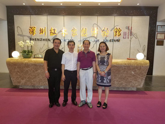 何質彬院士 (右2)和深圳紅木家具博物館王溫漫女士(右1)等人在博物館前合影留念