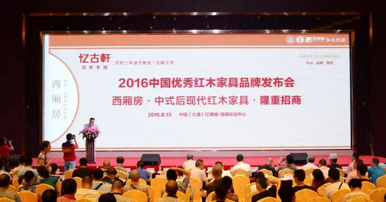 8月13日,2016品牌紅木家具經(jīng)銷商大會(huì)最為重要的環(huán)節(jié)——2016中國(guó)優(yōu)秀紅木家具品牌發(fā)布會(huì)在中國(guó)(大涌)紅木文化博覽城(以下簡(jiǎn)稱紅博城)六層高峰論壇中心召開,眾多優(yōu)秀紅木家具經(jīng)銷商以及紅木家具企業(yè)到場(chǎng)參與。