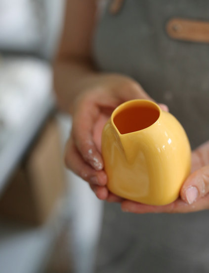 Mummo ,芬蘭語中奶奶的意思。Mummo小奶壺,是旻佳經(jīng)過反復(fù)的比例推敲和細(xì)節(jié)琢磨,根據(jù)手里握著奶壺最舒服的形態(tài)而制作的。她好像是奶奶的化身,在忙碌的深夜,在初醒的清晨,靜靜地為你遞上一杯熱牛奶,讓你感受到親人最近的牽掛和愛。