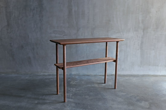 初看茶臺(tái),讓人不禁回憶舊時(shí)故里,放置在高堂的高桌,素雅與靜怡。茶臺(tái)由純黑桃木制做,利用榫卯結(jié)構(gòu),搭建上下兩層,加大了放置物品的空間與增加了便利性。從舊日的高桌中提煉質(zhì)樸,從當(dāng)代居家需求中加以改良。