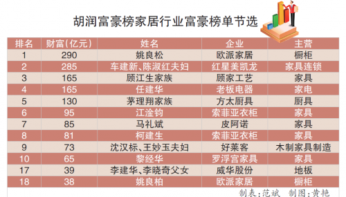 胡潤富豪榜家居行業(yè)富豪榜單節(jié)選