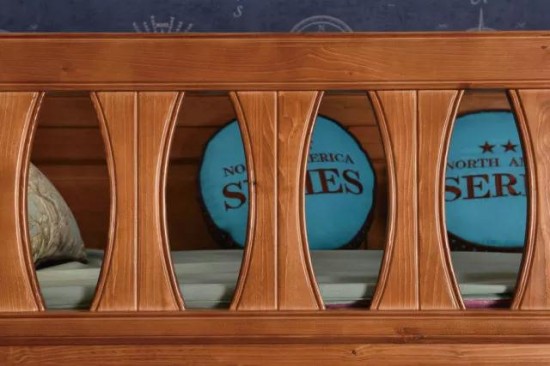 上下鋪就靠4根柱體連接,當(dāng)孩子在床上玩耍的時(shí)候,安全性應(yīng)該被更加重視。上下屏外觀設(shè)計(jì)沒(méi)有關(guān)聯(lián),2種不同的款式,若能更好的融合上下屏設(shè)計(jì)會(huì)更好。護(hù)欄處的實(shí)木鏤空裝飾應(yīng)當(dāng)是富有趣味性設(shè)計(jì),應(yīng)與青少年愛(ài)好有關(guān)聯(lián)。