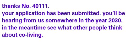 完成調(diào)查問卷后,網(wǎng)站會提示受訪者,他將于2030年收到來自項(xiàng)目方的回復(fù),屆時(shí)也將看到其他人關(guān)于“共同生活”的想法(下圖)。