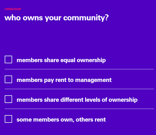 社區(qū)的歸屬權(quán)該怎么劃分?(成員平等享有;支付租金;按不同級別劃分;部分人擁有所有權(quán),部分人租賃)