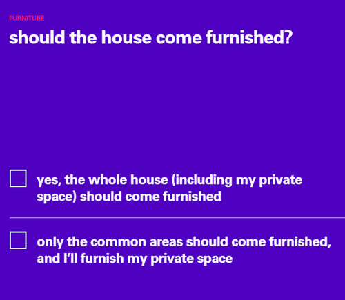共享居住空間是否應(yīng)配備家具?(整個(gè)空間都要配備家具;公共空間配備家具,私人空間自己配備)