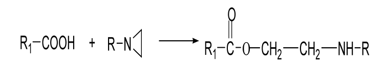 氮丙啶化合物是羧基的良好交聯劑,常溫下氮丙啶與羧基可發(fā)生快速反應形成交聯,反應式如下所示。