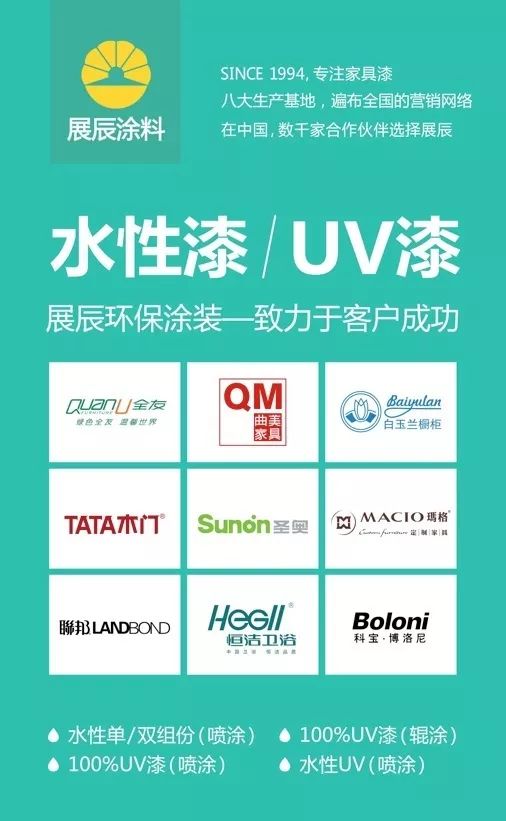 2017年,展辰水性漆、UV漆的增長高達85%,創(chuàng)行業(yè)奇跡,這是家具企業(yè)轉身的成果,更是展辰在環(huán)保涂裝上孜孜不懈的推動的見證。作為環(huán)保水性漆、UV漆的首要推動者,展辰涂料在推動環(huán)保和客戶成功的道路上越走越遠,正如展辰集團董事長陳冰先生所說,展辰未來十年要做涂料全產品線、國際化的公眾公司。