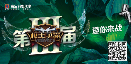 2018年4月10日起,作為國內(nèi)知名涂料及涂裝方案提供商的嘉寶莉,攜第三屆嘉寶莉家具漆“槍王爭霸”涂裝藝術(shù)大賽再度來襲,本次大賽以時下熱度最高的“綠色涂裝”為主題,將家具界與涂料界的目光聚焦在涂裝技術(shù)上,誓要在UV及水性涂裝領(lǐng)域打造絕對的王者,引領(lǐng)新的涂裝潮流!
