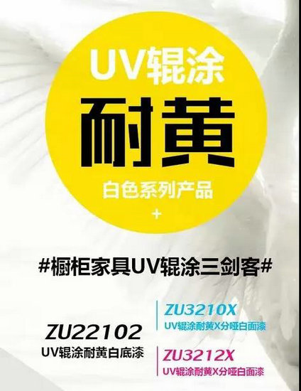 展辰針對(duì)櫥柜的防護(hù)性能,在櫥柜家具研發(fā)出新型功能環(huán)保產(chǎn)品——超耐黃,經(jīng)久不污三劍客: UV輥涂耐黃白底漆、UV輥涂耐黃X分啞白面漆ZU3210X與ZU3212X,為櫥柜家具解決易受潮變色、易受油污影響變色等防護(hù)問(wèn)題。