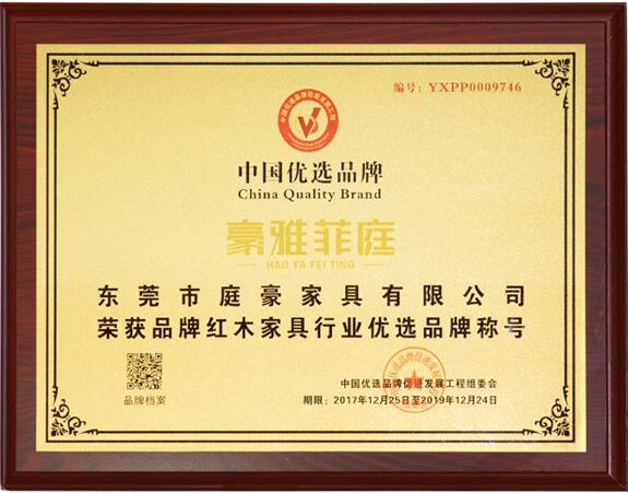 2017年12月25日,豪雅菲庭被CCTV《發(fā)現(xiàn)品牌》欄目組籌辦的中國優(yōu)選品牌促進發(fā)展工程評選為“紅木家具行業(yè)的優(yōu)選品牌”。在層層苛刻的考察與評選下,豪雅菲庭用工匠精神,感動了評委會,并贏得了評委會的一致好評。