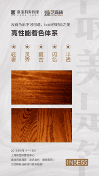 此時(shí)此刻,今年的新產(chǎn)品「高性能著色體系」正進(jìn)行落地效果呈現(xiàn),色彩更多變,工藝效果更簡易化,歡迎您到嘉寶莉家具漆N5E55展位實(shí)打?qū)嵉仡I(lǐng)略新產(chǎn)品的魅力!
