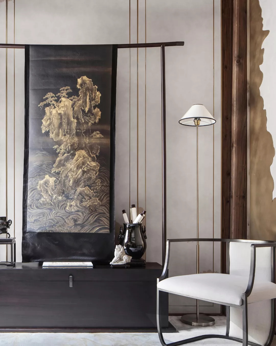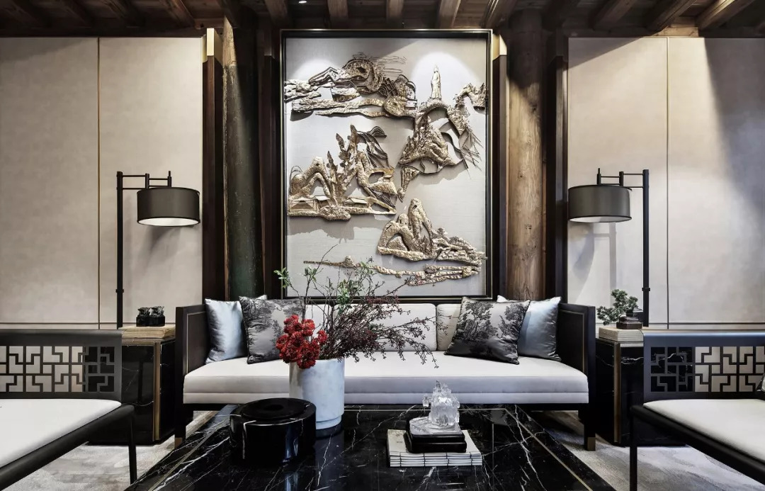 清雅的韻致散逸在空間的各個(gè)角落,各式古意盎然的藝術(shù)小品將空間的人文氣質(zhì)烘托盡出,遒勁的蒼枝,山水的抽象形態(tài),抒寫(xiě)著空間別具一格的東方美學(xué)。