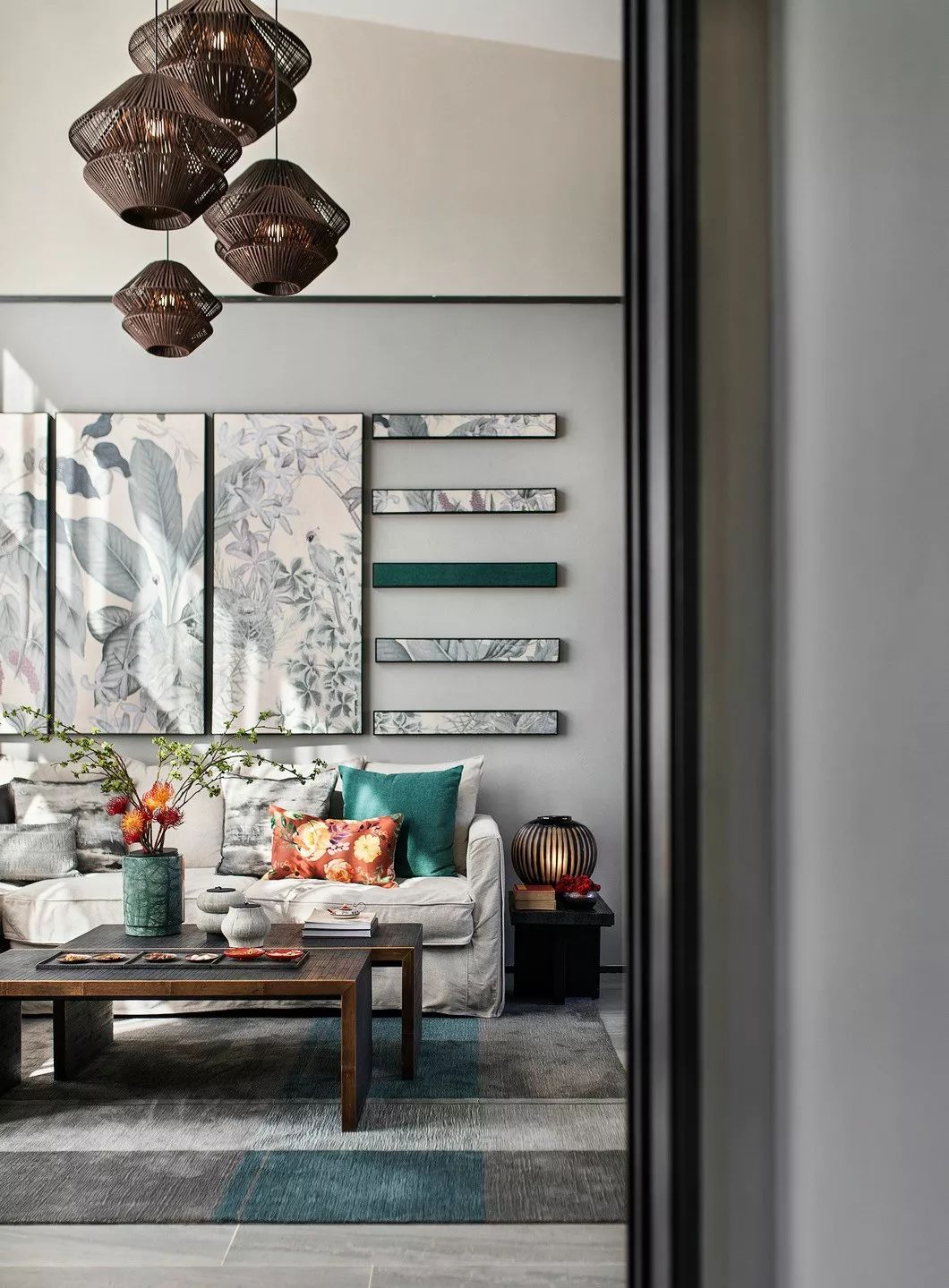 開闊的別墅庭院空間,自然植物綠意盈盈,通透的玻璃門窗消弭了內(nèi)外空間明確的界分感,將四季景致演變?yōu)榭臻g的一部分,每個(gè)空間都能享有充足的自然光照。敞亮的客廳,自然與人文氣韻交融,古雅而不乏活力的配色,在沉靜從容中散發(fā)出欣然自在的韻味。