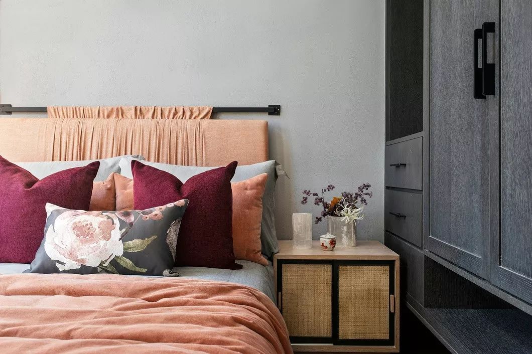 設(shè)計(jì)在清涼與溫?zé)帷⒊林c明艷之間尋覓到微妙的平衡,汲取于自然的色彩,亦有著恰到好處的人文溫度。臥室空間設(shè)計(jì)融入了簡約的幾何色塊,結(jié)合自然靈韻和極具傳統(tǒng)氣質(zhì)的飾物,使空間氛圍顯得悠然而生動。