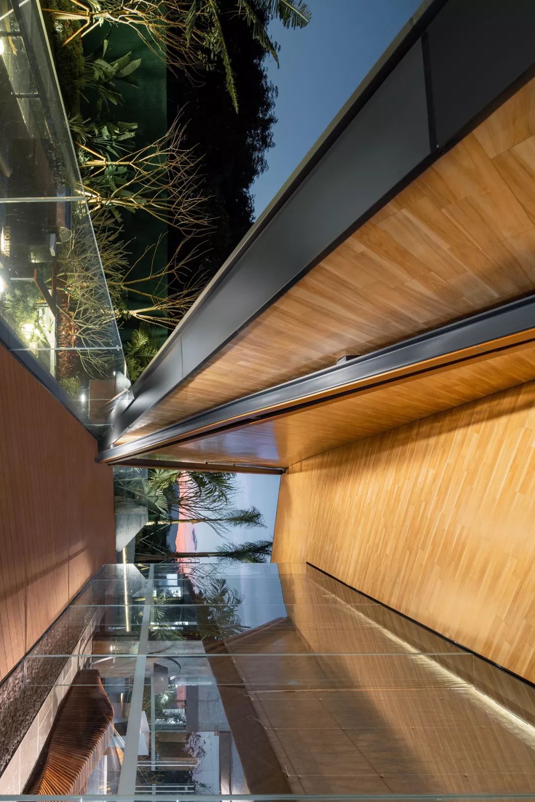 設(shè)計(jì)師將木、土、玻璃這樣的自然材質(zhì)以現(xiàn)代手法的轉(zhuǎn)化,保留最質(zhì)樸的一面。透明玻璃磚的使用,使得即便是洗手間,也有光影的舞蹈,躍動(dòng)出空間的張力。