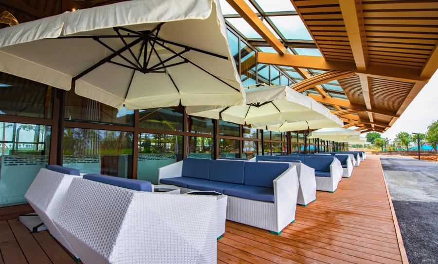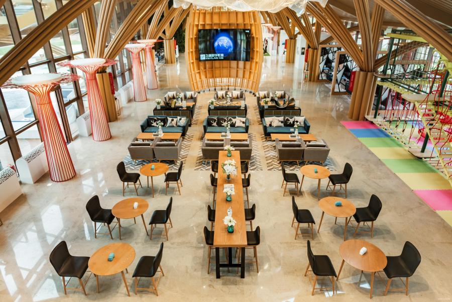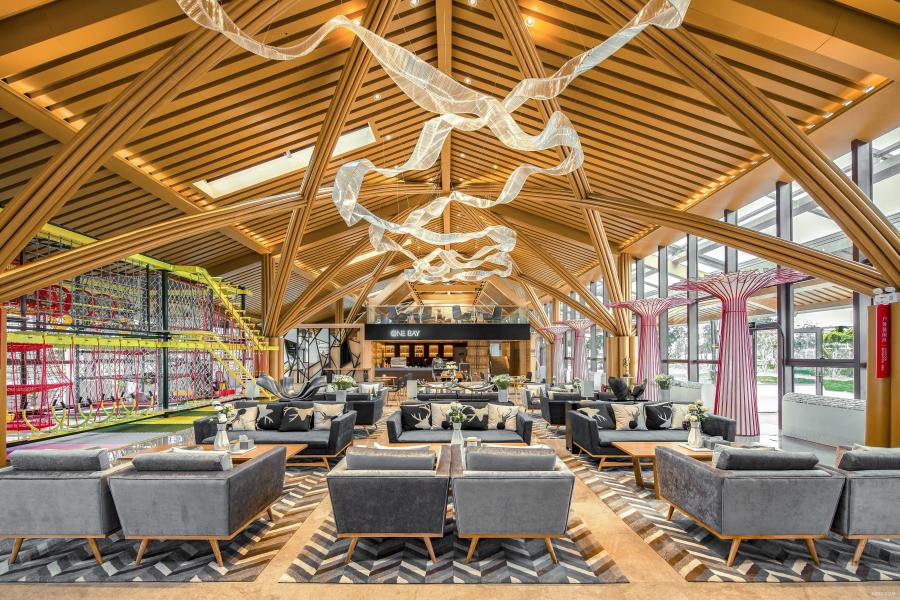 設(shè)計基于項目宏大的規(guī)劃理念,聽海觀山,綠色生態(tài)。建筑是開放式空間,在人字脊頂下,內(nèi)設(shè)接待、洽談、企業(yè)展示、項目規(guī)劃展示,再有安靜的閱讀區(qū)、休閑的咖啡吧、拓展訓(xùn)練兒童活動區(qū)及工作區(qū)等功能服務(wù)濱海發(fā)展。