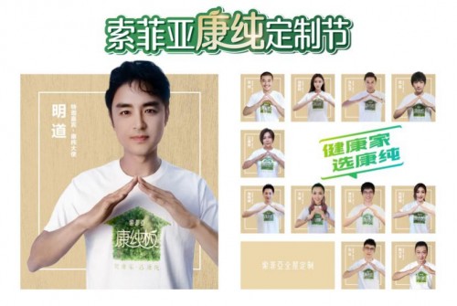 2019年10月18至11月17日期間,明道、后弦、安琥、江美琪、王蓉、海鳴威、石頭、徐歌陽、陶大宇、劉明湘、李行亮、關(guān)禮杰等明星紛紛加入“索菲亞康純大使”的行列,將空降全國康純發(fā)布會(huì)現(xiàn)場親臨助陣,帶領(lǐng)全國各地的粉絲們一同認(rèn)識索菲亞,認(rèn)識索菲亞康純板,向大家推廣家居環(huán)保新生活的理念。