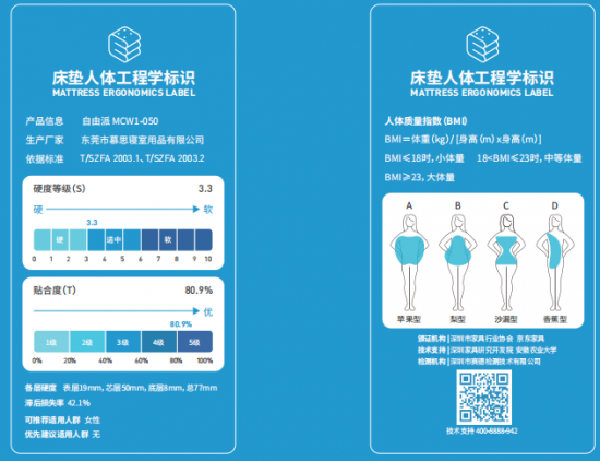慕思部分產(chǎn)品床墊人體工程學(xué)標(biāo)識(shí)