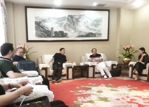 ▲蘇州家具展創(chuàng)辦人趙藝學向贛州市委常委、南康區(qū)委徐兵書記匯報蘇州展12年的發(fā)展歷程及本屆展會籌備情況