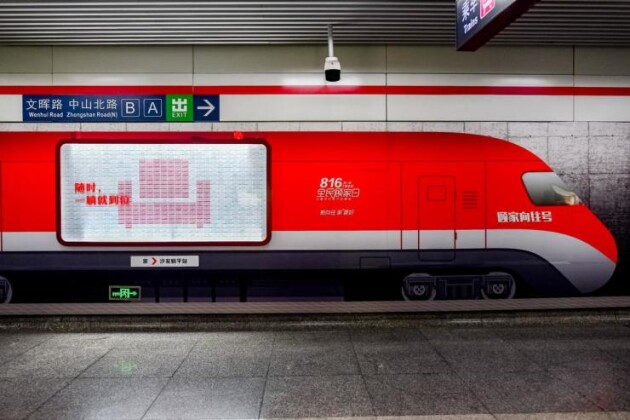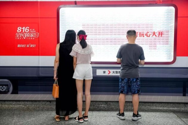 例如,在人來(lái)人往的杭州西湖文化地鐵站,顧家家居打造了一輛“向往號(hào)列車”,以5000張車票貼滿了總長(zhǎng)28米的7節(jié)車廂,向人們展示了床墊、衣帽間、餐桌、櫥柜、組合沙發(fā)、按摩椅、單人沙發(fā)7種向往的生活場(chǎng)景,引來(lái)大批民眾圍觀和參與。