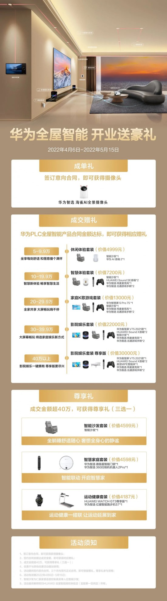 華為全屋智能授權(quán)體驗(yàn)店(寶能·第一空間)開業(yè)及五一期間,享受以下優(yōu)惠