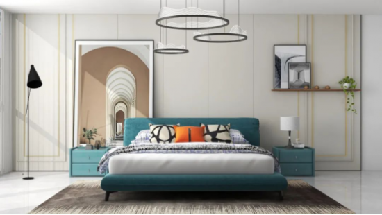 灰色中加一點藍調,CBD家居·白金 | BS007軟床,悅現(xiàn)復古感,床身線條簡練流暢,布藝的柔韌性加持,多一份飄逸舒緩的氛圍感。