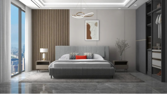 CBD家居·智慧 | Z087軟床,冰川灰色布藝有著淡淡的溫柔質感,空間也因此從容自如,擁有自然而然的詩性,淡雅風情。