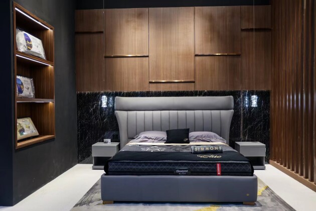 Simmons席夢思首發(fā)展出的Elite奢華系列配套床架維吉爾及愛羅伊,定位高端客群,一經(jīng)推出就吸引了眾多目光,床表層均采用了優(yōu)質(zhì)頭層牛皮,并經(jīng)由磨革機(jī)讓其表面產(chǎn)生絨感,整體的磨砂牛皮面料華貴內(nèi)斂,床架線條利落,造型雅致時(shí)尚,讓臥室空間耳目一新。