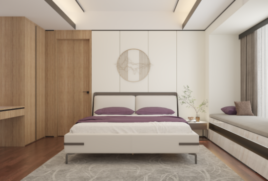 以清爽的白色為主色,定制柜的木色增強(qiáng)空間的自然感與親和力,一定程度上舒緩情緒。CBD家居·金豹 | J039軟床,床身采用棕色和米色搭配,淡雅溫馨,獨(dú)立靠包滿滿立體,自在倚靠,舒適感深入人心。