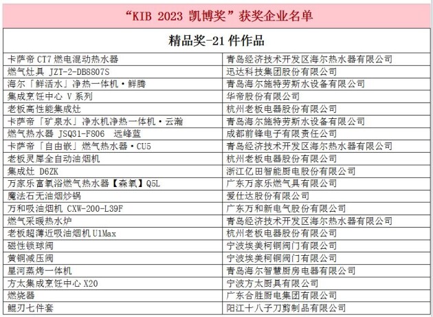 作為行業(yè)風向標和晴雨表的中國國際廚衛(wèi)家居博覽會展會,本屆展會的舉行對廚衛(wèi)行業(yè)和市場下一步的發(fā)展具有重要的引導意義。為此,主辦方在今年這樣重要的展會年上,專門設立了凱博獎。凱博獎獲獎作品具備行業(yè)創(chuàng)新性和引領性,在產品質量、產品性能、節(jié)能環(huán)保等方面具備較強實力。首批共發(fā)布精品獎20個,優(yōu)品獎和新品獎21個。