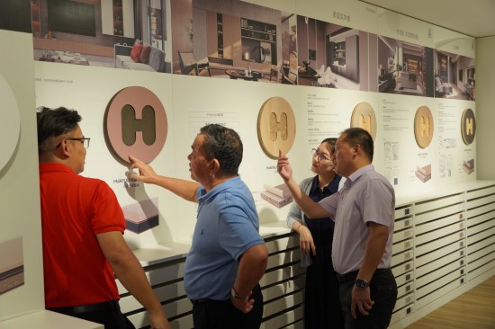 會議結(jié)束后,與會專家及領(lǐng)導(dǎo)團在華立股份的熱情邀請下,共同參觀了公司的展廳。在展廳內(nèi),專家們近距離考察了華立股份在綠色建材領(lǐng)域的最新研發(fā)成果與生產(chǎn)實力,對其在甲醛釋放控制、氣味優(yōu)化等方面的技術(shù)突破給予了高度評價。