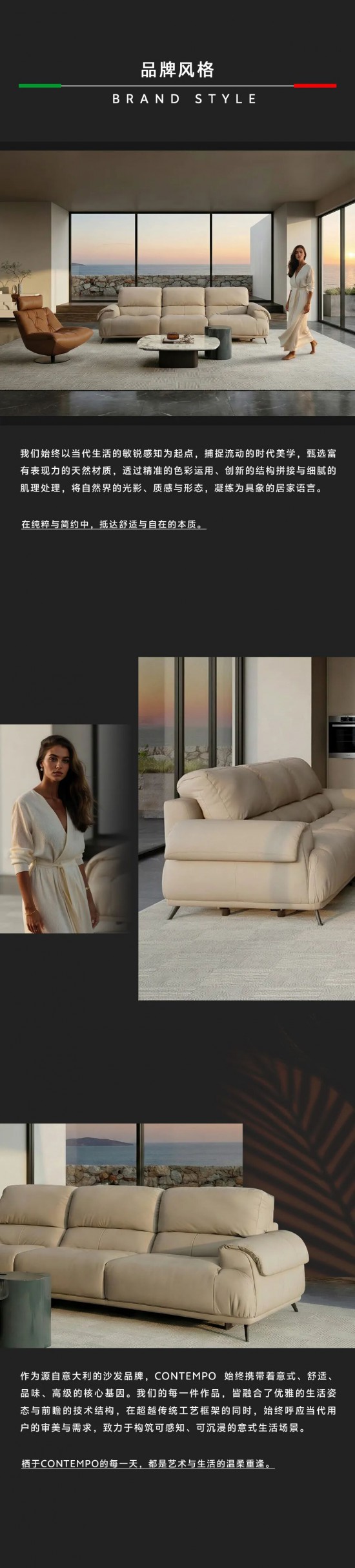 核心提示:作為源自意大利的沙發(fā)品牌,CONTEMPO 始終攜帶著意式、舒適、品味、高級(jí)的核心基因。