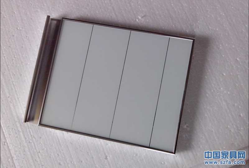 優(yōu)質(zhì)的櫥柜門(mén)板(納米鈦晶板、碳光板):背部是實(shí)木多層板,表層是2mm的半鋼化玻璃,周邊是鋁合金。