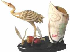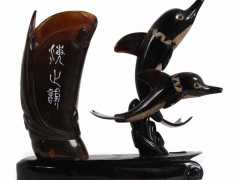 動物造型牛角雕刻筆插