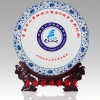 青花陶瓷紀(jì)念盤的構(gòu)圖。青花雖然是單一色彩,由于它在白瓷上呈現(xiàn)的青藍(lán)色而顯現(xiàn)的嬌翠欲滴,使得人們對(duì)它鐘愛(ài)有佳。青花陶瓷紀(jì)念盤的構(gòu)圖不管是簡(jiǎn)是繁,都要體現(xiàn)一個(gè)完整、生動(dòng)的畫面。我們常常能夠看到一些老藝人,畫青花似乎想都不要想,只見(jiàn)彩筆揮動(dòng),一幅幅畫面躍然瓷上。而實(shí)際上這些老藝人對(duì)他所畫的畫面,不知畫了幾千上萬(wàn)次。也就是說(shuō)他們所畫的圖案,許多都是從先輩那兒傳承下來(lái),雖然其間對(duì)圖案的不合理性以及圖案與生活關(guān)系的遠(yuǎn)近作了許多合理的修改和變動(dòng),但基本上形成了一個(gè)定勢(shì)。這個(gè)定勢(shì)也就是所畫的東西,已經(jīng)成為一個(gè)固定的畫面。