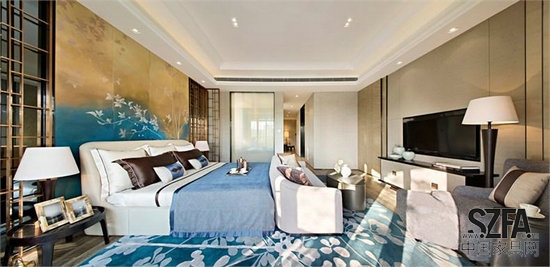 其他睡房皆以溫馨雅致為空間主題,水墨油畫的墻面主題與粗糙肌理的飾品相搭配,于沉穩(wěn)中煥發(fā)和諧自然的氣氛;時(shí)尚前衛(wèi)的家具又為空間提升了無(wú)限靈動(dòng)。