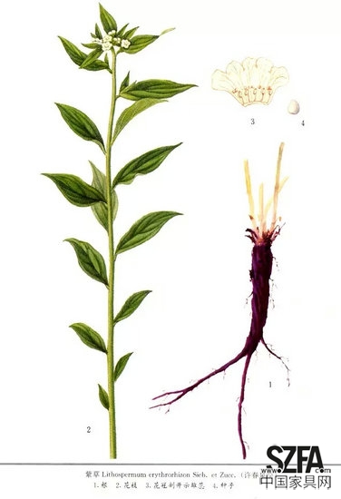 中國傳統(tǒng)紫色染料基本只有紫草的根,制取復雜,其色素難溶于水,并且不甚穩(wěn)定。宋以后紫色的染取技術逐漸提高和豐富化。