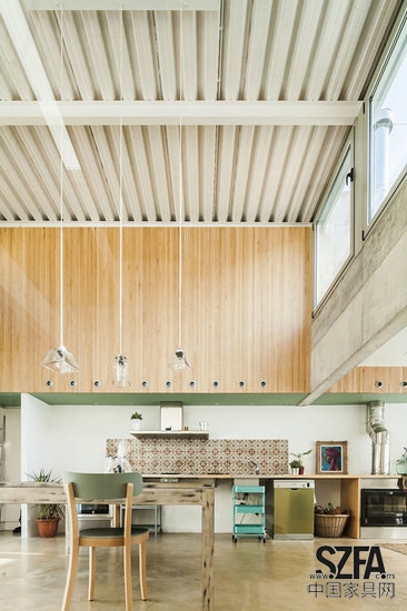 為了滿足這些要求,SAU Taller de Arquitectura事務(wù)所提出了一個明確的方案:將服務(wù)和貯藏空間移至無門窗、缺乏采光的墻邊,留出一個明確的核心空間,將周圍的碎空間整合在一起。由此,我們輕松地將臨街和朝向庭院的墻面解放出來。而這些墻面朝南或朝北的朝向,自然地變成了整個房子采光面和通風(fēng)過濾器。這樣的改變還能使房子擁有自由和靈活的布局,根據(jù)住戶需要使用輕質(zhì)板分隔。為了實(shí)現(xiàn)這個目標(biāo),我們會在混凝土墻中預(yù)留出隱蔽的固定點(diǎn)用以在日后搭建簡單的木質(zhì)結(jié)構(gòu)。