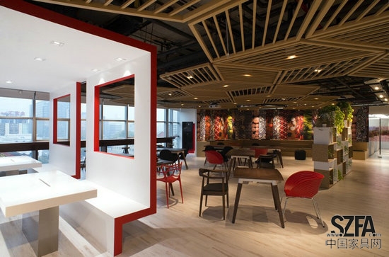 位于九層的OCafé辦公區(qū)以奧美的標(biāo)志紅色為基礎(chǔ),明亮的色彩令員工充滿激情創(chuàng)意的個(gè)性彰顯無疑。