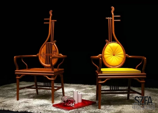 這款作品蘇州昆曲三大樂(lè)器之一“柳琴”為主要?jiǎng)?chuàng)作元素,其靈動(dòng)性體現(xiàn)于靠背,小范圍的雕花更是起到點(diǎn)睛的作用。滲入海派摩登元素,更展現(xiàn)作品的國(guó)際東方氣質(zhì)。