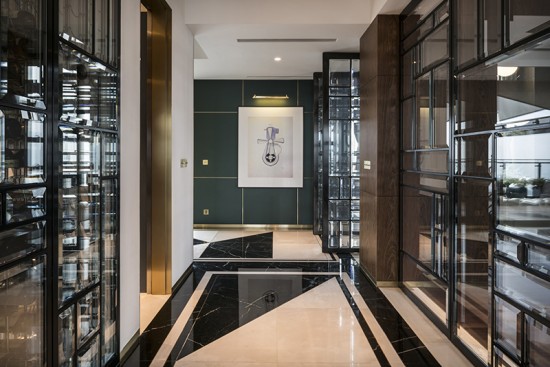 Thomas Dariel創(chuàng)作的空間中不僅僅完全呈現(xiàn)了裝飾藝術美學,同樣作為一個巴黎人,在整個設計過程中也融入了巴黎式高雅品味。而風格化的當代藝術作品不失的點綴這整個空間,帶來了無與倫比的藝術氣息,也更好的反映了熱愛藝術和設計的生活態(tài)度。個性獨到的設計手法,鮮明的視覺效果,對于細節(jié)的苛求把控,融入歐洲頂尖家私及燈具設計師作品以及高品質人性化設備,營造出獨特而不張揚的平衡之美。