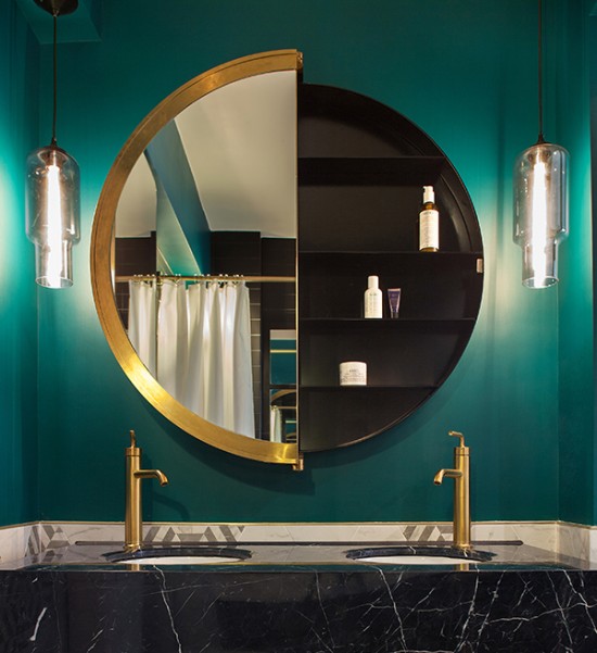 該公寓的設(shè)計(jì)美感干凈,清新且精致。盡管會(huì)讓人聯(lián)想到閣樓的空間連續(xù)性,Lim+Lu旨在避免與現(xiàn)時(shí)泛濫的紐約工業(yè)風(fēng)有任何關(guān)聯(lián)。為擺脫無(wú)處不在的工業(yè)“時(shí)髦”,設(shè)計(jì)師刻意地選擇了可以給空間注入新生命的色調(diào)??蛷d和臥室的墻壁采用白色搭配黑色,劃分出休息和放松的空間。同時(shí),廚房、書(shū)房、步入式衣帽間和主臥使用豐富的粉彩和深寶石色調(diào),與圖案瓷磚雅致搭配,使得核心居住空間與延伸空間融為一體。由區(qū)別細(xì)微的顏色、質(zhì)感和材料構(gòu)成的門(mén)坎保持了空間的流動(dòng)性,使得空間毫不費(fèi)力地融合成一個(gè)整體。