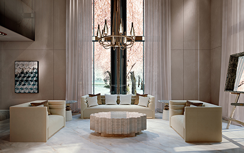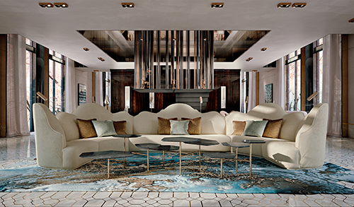 Michelin扶手椅的線條設(shè)計(jì)一致,目的是造就兼具舒適與光彩的獨(dú)特空間氛圍效果。Roca Unido矮桌采用水銀噴漆技術(shù)以及鋸齒狀的外形??臻g中還放置了Cortes咖啡桌,它也是整個(gè)品牌銷售量最高的產(chǎn)品之一,精巧的手工制作迎合了Clan客戶的需求。Sierra是一個(gè)沙發(fā)體系,靈感來自北美洲延綿群山的自然曲線,采用定制模塊構(gòu)成整個(gè)結(jié)構(gòu),因此可以無限延伸。